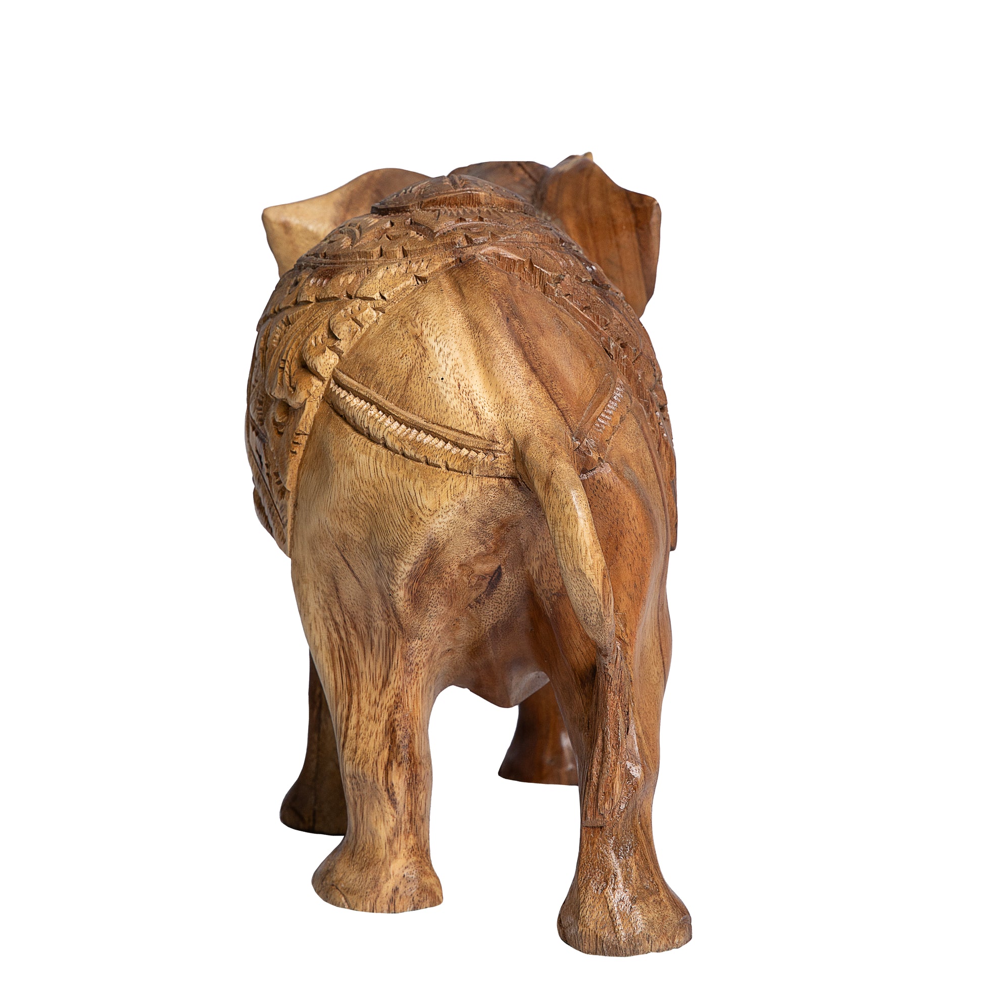 “Crafted from premium wood, this hand-carved wooden elephant sculpture showcases intricate details and exceptional artistry. Its natural and elegant design brings warmth and eco-friendly charm to any decor, making it ideal for homes, offices, or any space in need of unique wooden decor. Created with sustainably sourced materials, this piece represents both beauty and a commitment to the environment. Perfect as a thoughtful gift for lovers of quality craftsmanship, this sculpture adds a touch of nature and serenity to your space.”